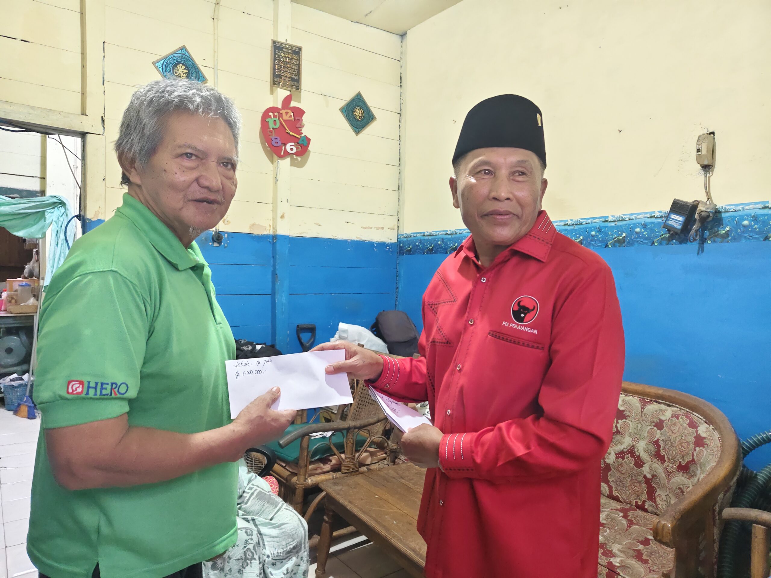 Ketua DPC PDI Perjuangan Kota Samarinda, Sugiyono, Memberikan bantuan Kepada Masyarakat Lansia. Samarinda- Dewan Pimpinan Cabang (DPC) PDI Perjuangan Kota Samarinda melaksanakan kegiatan Pemberian Tanda Penghargaan dan Bingkisan kepada Tokoh-tokoh PDI Perjuangan.